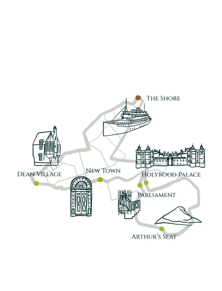 The Shore: Our adventure will end in the picturesque harbour of Leith, a once vital trading port now a vibrant waterfront with bars, resturants, and cafes. We will finally drift back to our starting point.