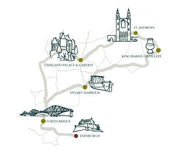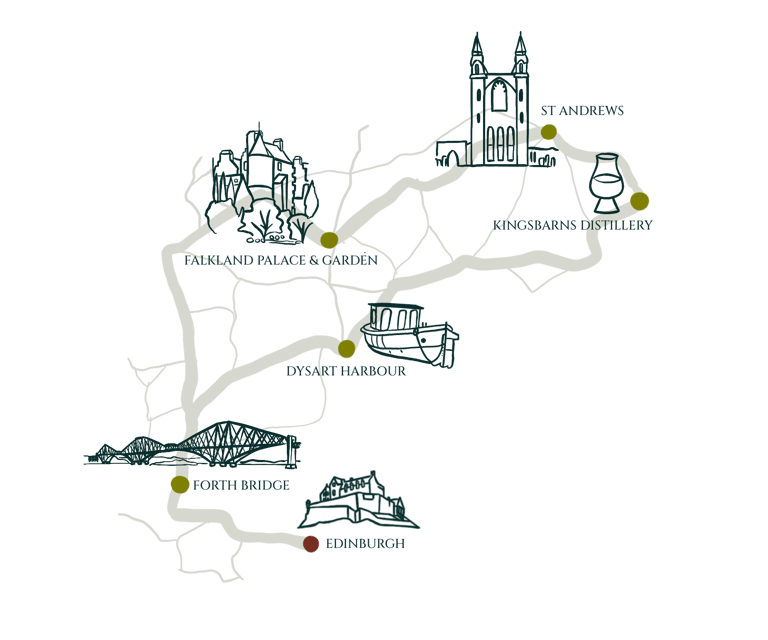 Al final del día, habrás experimentado muchas de las mejores cosas que Escocia tiene para ofrecer, desde el pintoresco puerto hasta la experiencia en la elaboración del whisky, pasando por la encantadora ciudad de St Andrews y el impresionante Palacio y los jardines de Falkland.