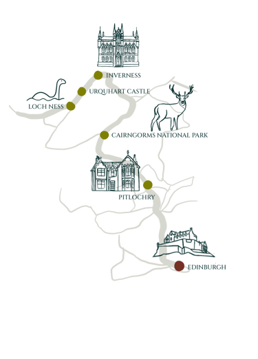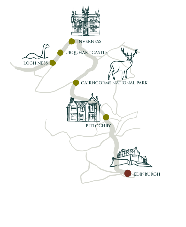 Nel pomeriggio attraverseremo il Cairngorms National Park, famoso per la sua ricca fauna e i suoi paesaggi aspri. La nostra ultima tappa sarà Pitlochry, un pittoresco villaggio che è stato una destinazione turistica popolare fin dall’epoca vittoriana. Oltre a godere della sua unica architettura, qui potrai gustare una pinta di birra locale, un bicchiere di whisky o del cibo tradizionale scozzese. Prima di tornare a Edimburgo, ci sarà ancora tempo per un’ultima sosta. Ci fermeremo al belvedere di South Queensferry, per ammirare la meraviglia ingegneristica che è il Forth Rail Bridge; costruito alla fine del diciannovesimo secolo, è uno dei 6 siti patrimonio dell’umanità dell’UNESCO in Scozia.