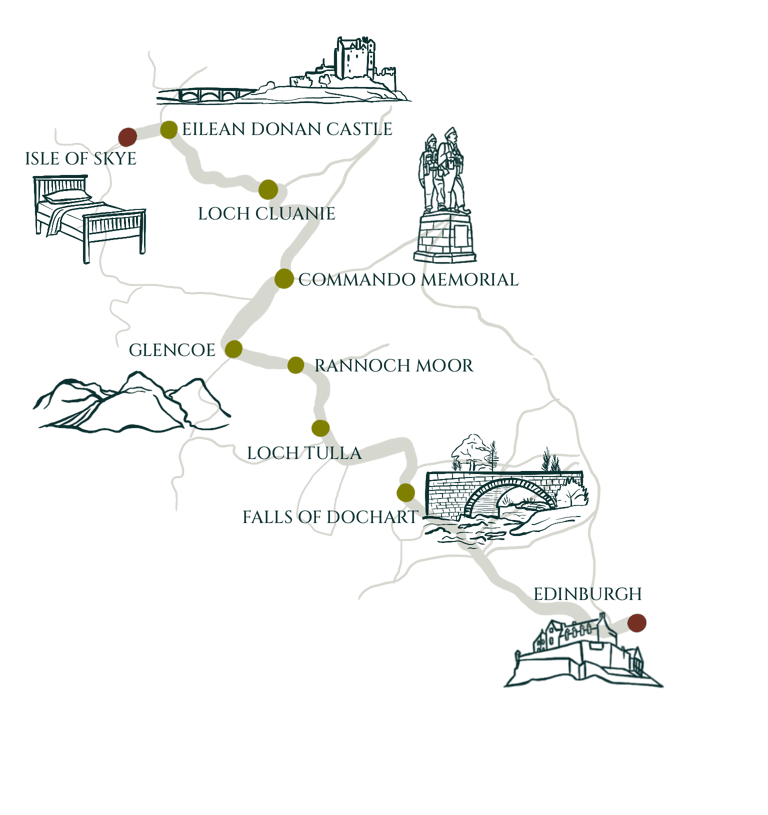 Partendo da Edimburgo, attraverseremo il parco nazionale del Loch Lomond e Trossachs, dove faremo una prima sosta per la colazione a Killin, sede delle bellissime rapide di Dochart.
